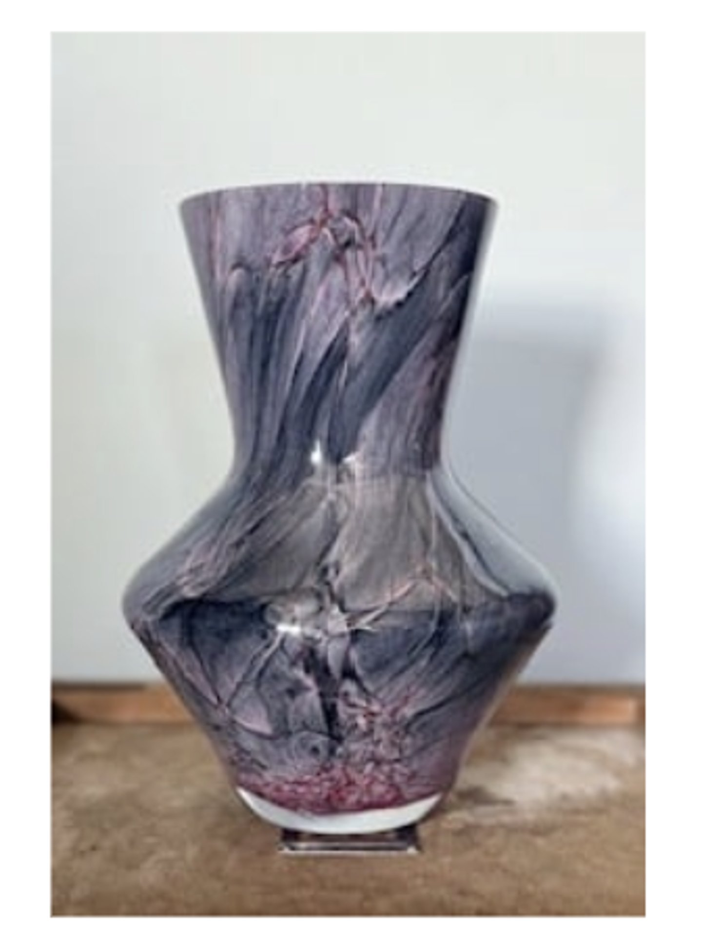 Hand-blown glass, The Amethyst Drift glass vase features a wide, grounding base that tapers into a slender neck before flaring gently at the rim. Height-27cm, Width 20cm