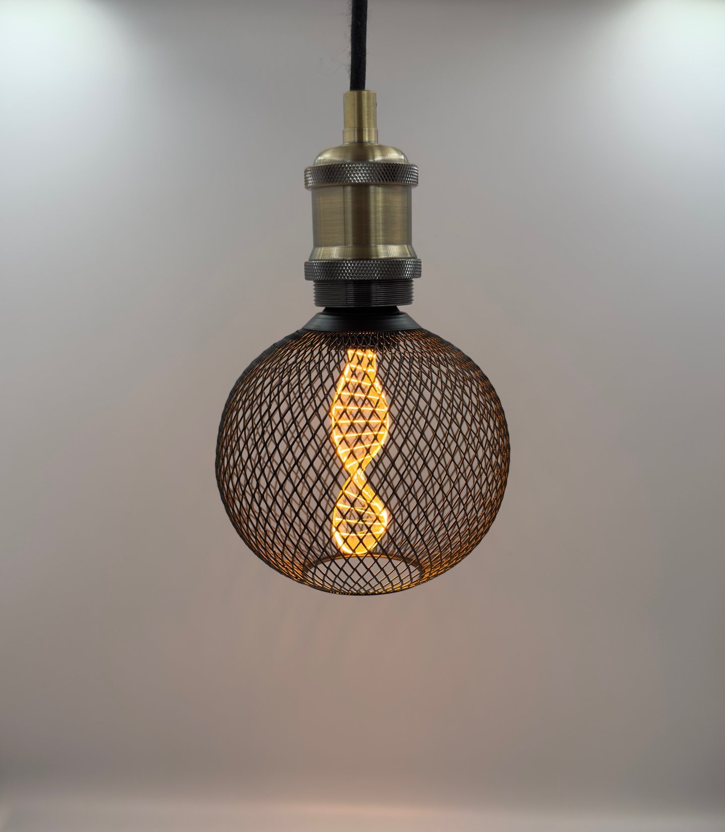 DC-F109, CHAINMAIL BULB, Dimmable LED E27 FilamentExperience the perfect fusion of elegance and functionality with our LED light bulb featuring a decorative metal basket design. Height: 15cm Depth: 12.5cm31.0025.00
