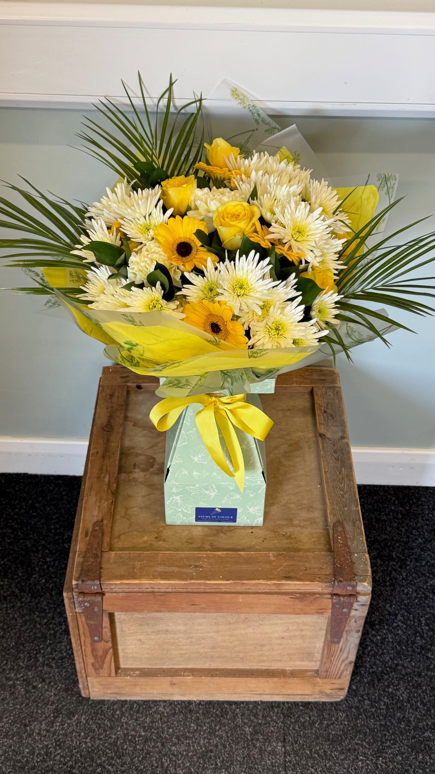 Brighten their day with this joyful bouquet of sunlit blooms — hand-tied for instant cheer. Flower types and colours may vary seasonally, but we promise a handcrafted arrangement perfect for gifting or brightening any day.